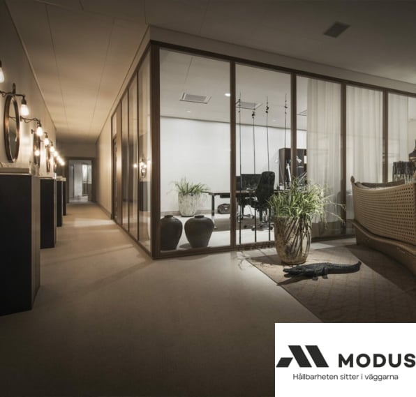Modus är ett svenskt företag som utvecklar, tillverkar och inreder med 100% återbrukbara systemväggar, för hållbara och flexibla arbetsplatser